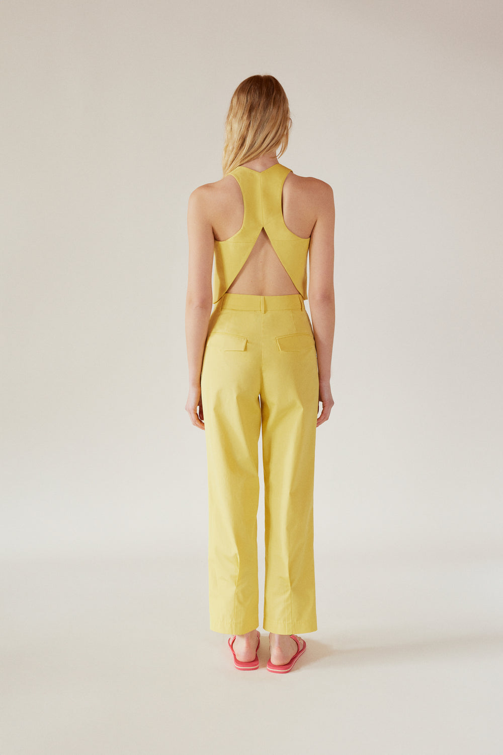 Kreatif Direktör Pelin, desenli pamuk karışımlı bu yeleğin zarif açık arka kısmıyla PIA'nın klasik terzilik kurallarına beklenmedik bir yorum getiriyor. Ön kısmı V yaka açıklığına sahiptir ve çift şerit cep ile donatılmıştır. Eşleşen Poca Pantolon ile tarzınızı şekillendirin.
