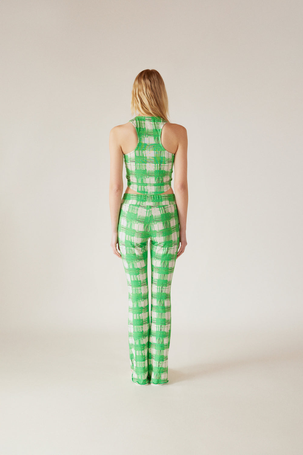 Soho, bu klasik silüete doku katmak için göğüs çevresinde kıvrılan, esnek kumaştan, ince, kolsuz bir üsttür. Bükümleri, ultra kısaltılmış bir etki için aynalı bir V yaka ve ters V etek boyu oluşturur. Uyumlu Soho Pantolonlarla stillendirin.